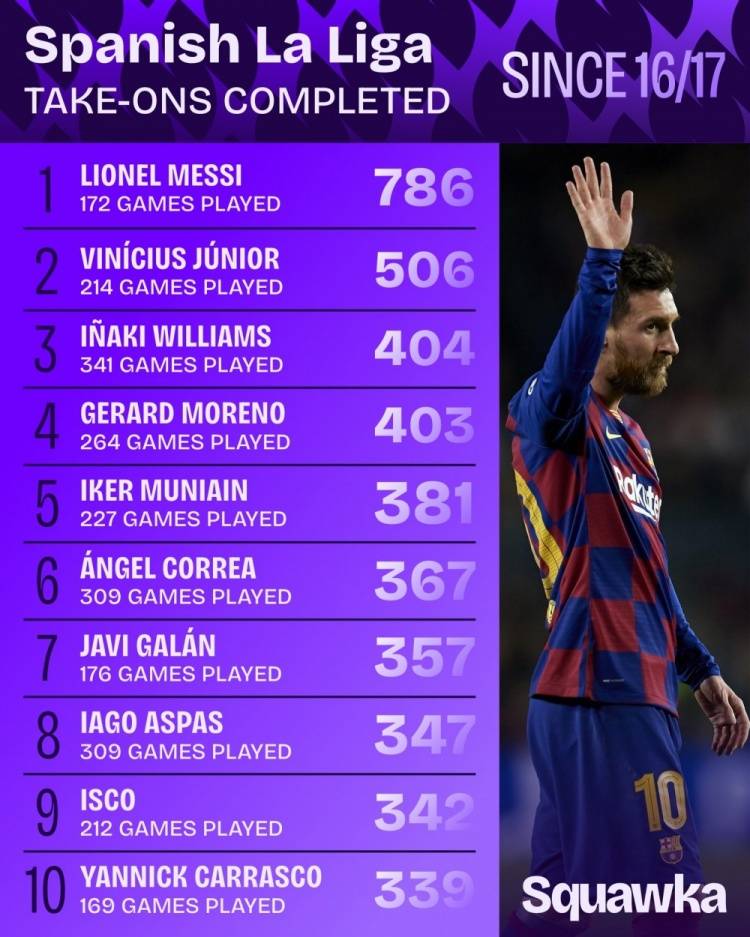 梅西让了四年,他在西甲的过人数还是独一档!