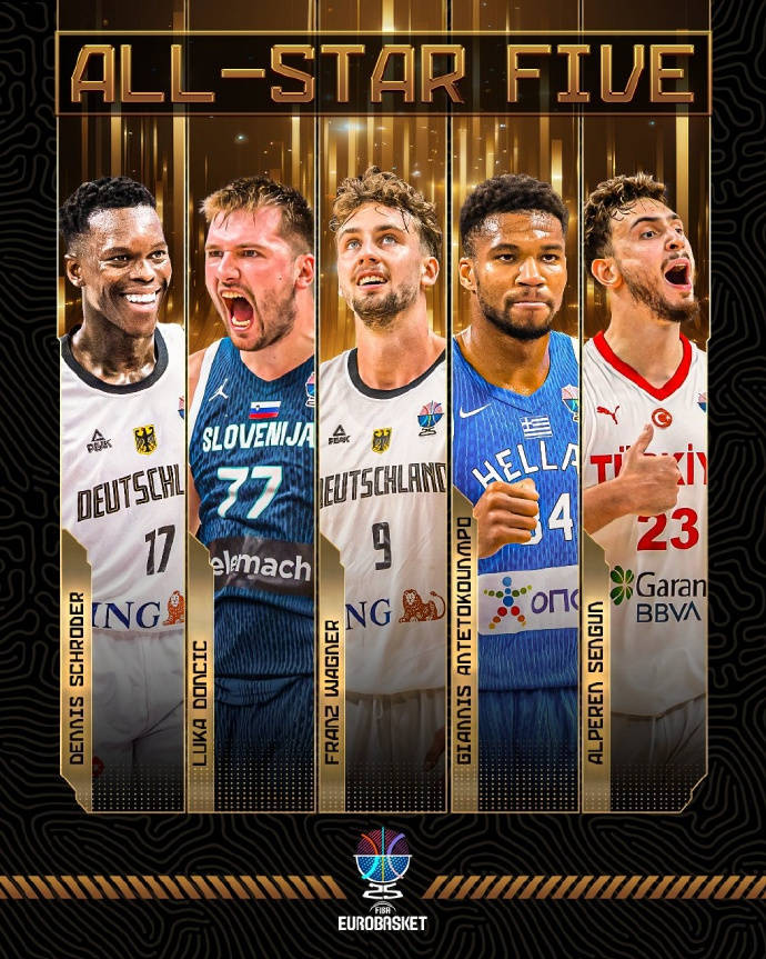 欧洲杯最佳阵容:东契奇字母哥领衔 德国两人入选